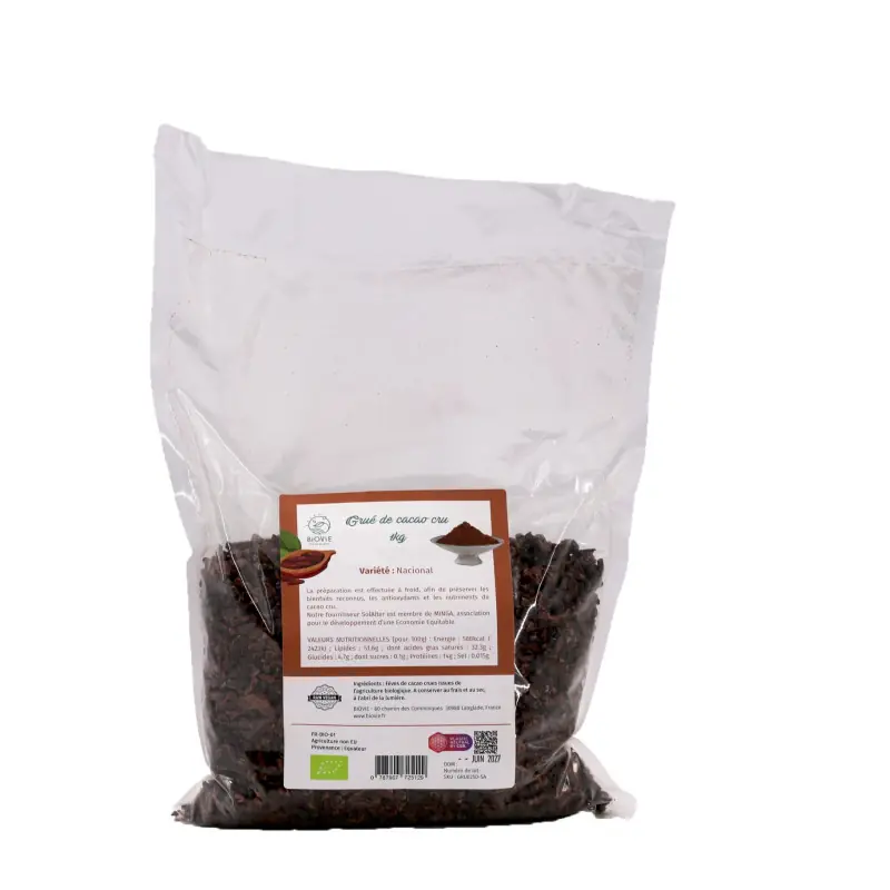 El grué de cacao se desliza por todas partes. Para dar crocante a tus pasteles y crumble, como topping en tus smoothies-bowl o nice-cream, y por qué no probarlo en tus platos salados: ¡el cacao también se utiliza como una especia !